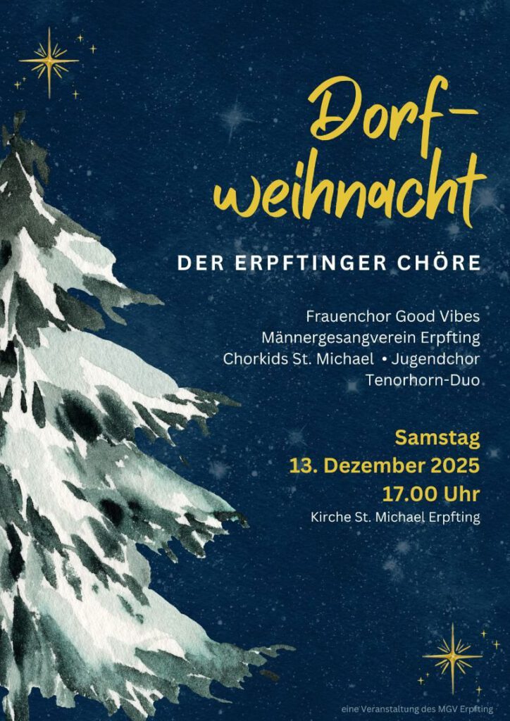 Dorfweihnacht der Erpftinger Chöre am Samstag, 13.12. 2025, um 17 Uhr  in der Erpftinger Pfarrkirche.